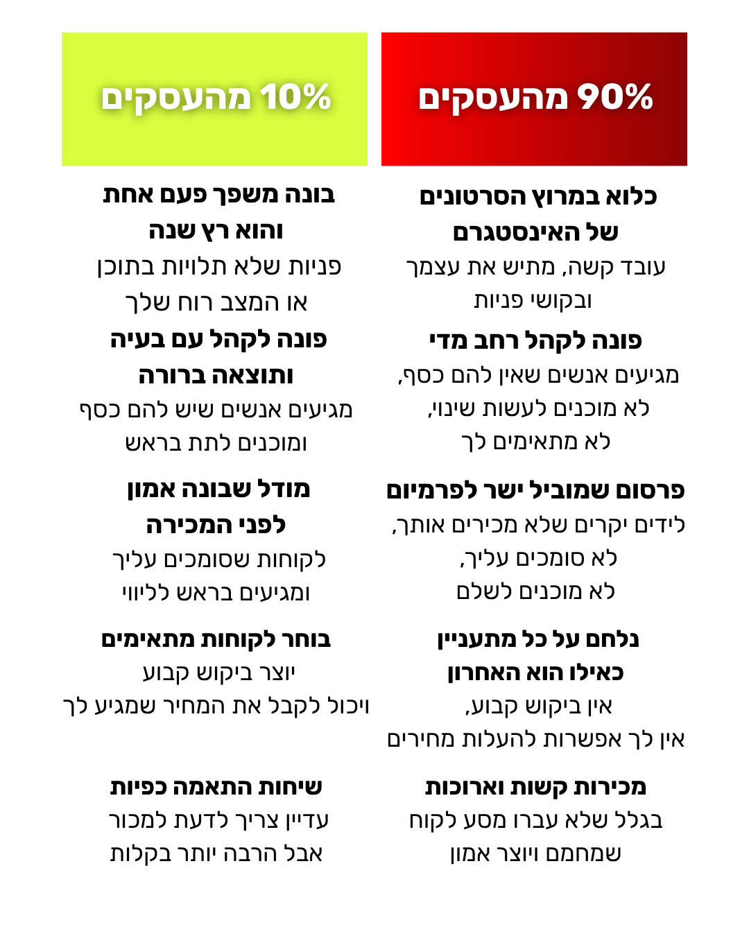 מסר חד וברור שימצב אותך כמומחה שפותר בעיה ספציפית עם תוצאה ברורה לקהל אחד.